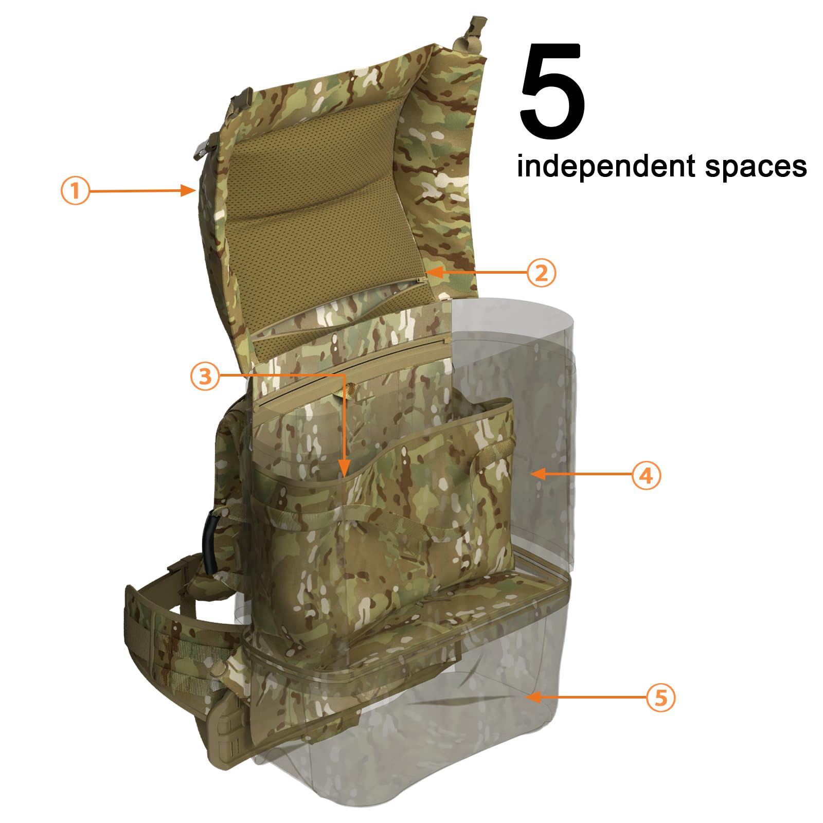 - Fully Modular Rucksack System for Multi-Mission Use – This 82L(5000 cu.in) military ruck includes a main backpack, modular waist belt, and an external ABS frame, allowing customized loadouts for different missions.